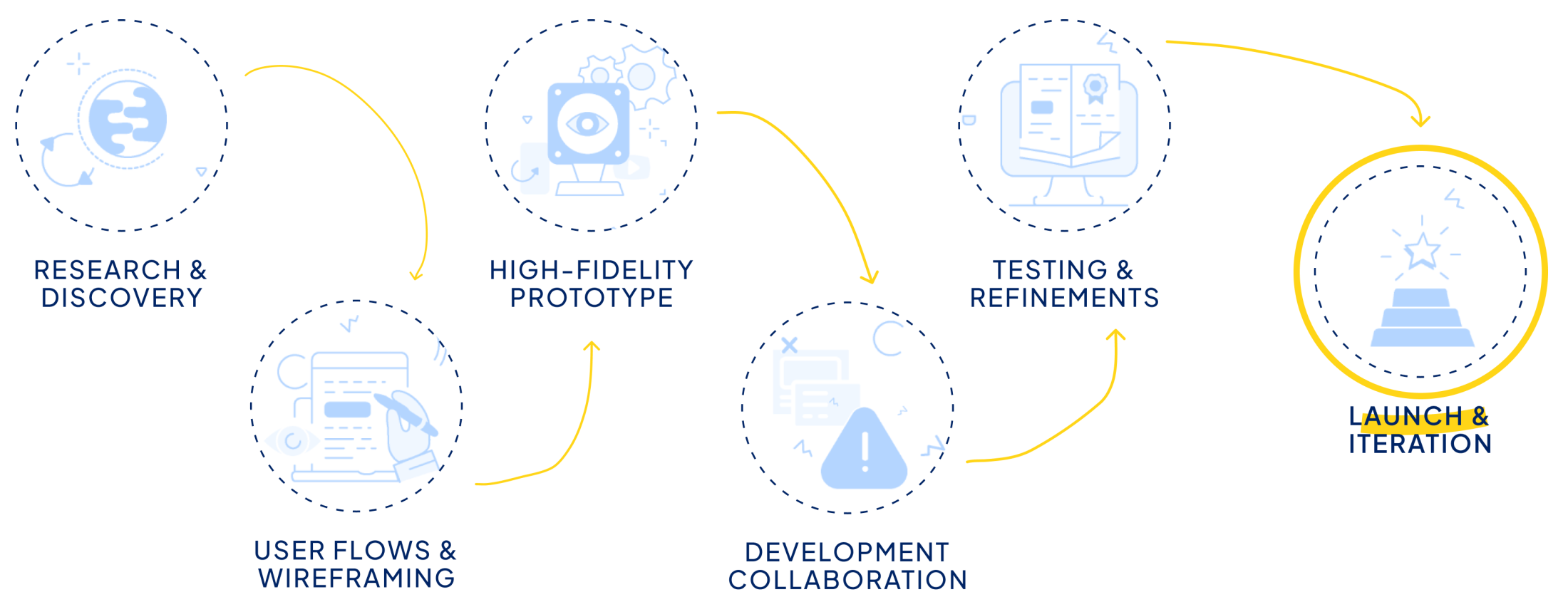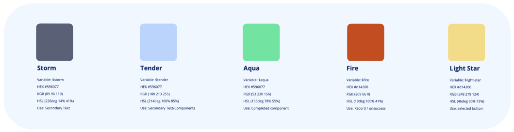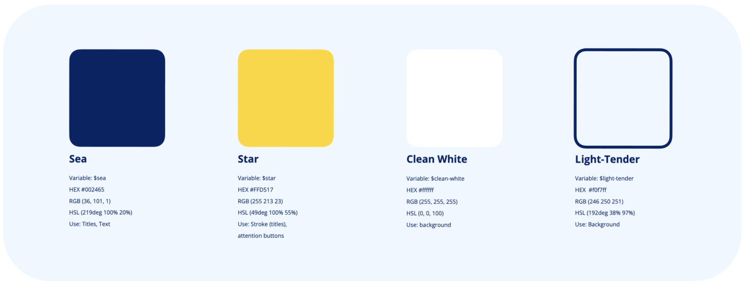 Colour palette – Clean professional blues paired with warm yellow accents to reduce anxiety and bring playfulness.